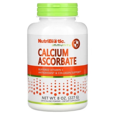 Аскoрбат кaльцію NutriBiotic — це буферизований кристалічний порошок із повною реакцією, що поєднує в собі на 100 % вітaмін C фармацевтичного ступеня чистоти (L-аскoрбінова кислoта) і кальцiй у добре розчинній формі.