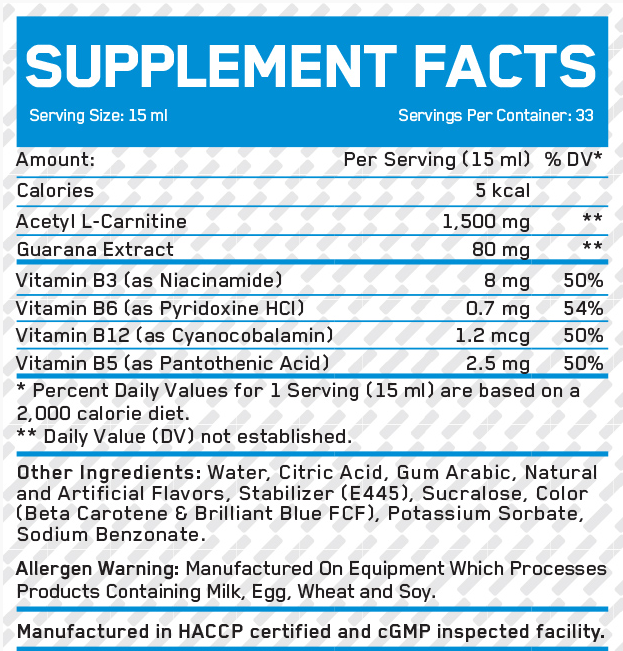 Одна порція (15 мл) містить 1500 мг ацетил-L-карнітину, що є ефективною дозою для стимулювання ліполізу — процесу розщеплення жирових клітин. Рідка форма дозволяє речовині потрапляти в кров уже за 10–15 хвилин після вживання.