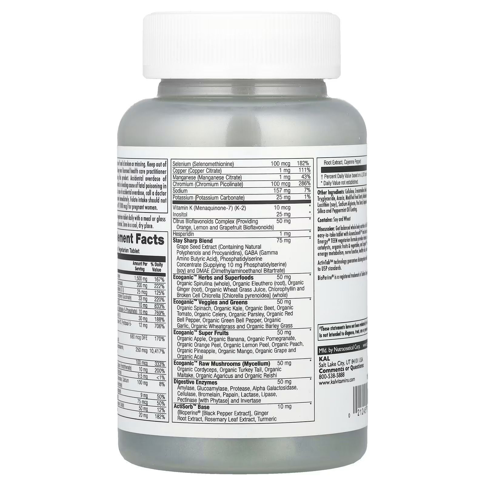 Мультивітаміни для підлітків KAL Enhanced Energy Teen Stay Sharp Multivitamin 60 таблеток