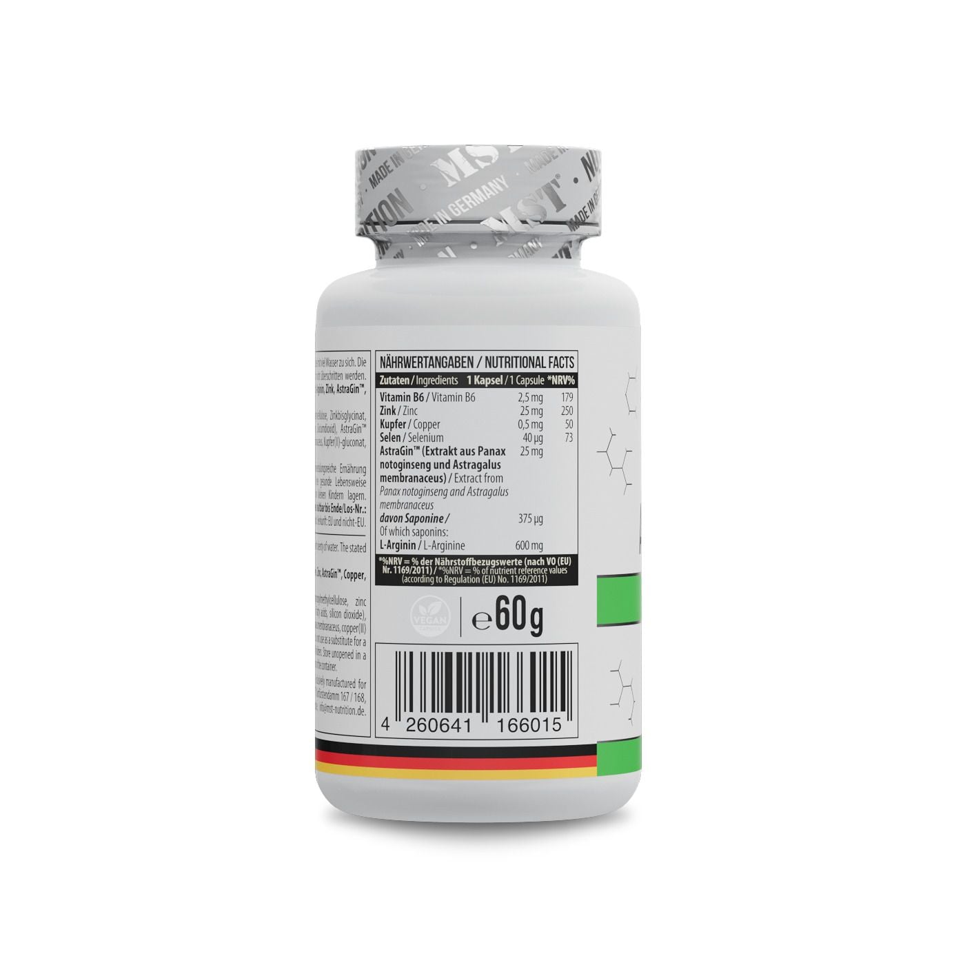 Запатентований комплекс AstraGin® (екстракт женьшеню Panax notoginseng та астрагалу Astragalus membranaceus) підвищує біодоступність та засвоєння аргініну, цинку та інших поживних речовин, що робить MST ArgiZink Forte ще ефективнішим. Він підтримує здоров’я кишківника, покращує всмоктування нутрієнтів та сприяє загальному зміцненню організму.