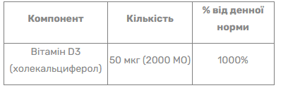 D3 також сприяє зменшенню запальних процесів, регуляції імунної відповіді та підтримці здоров’я серцево-судинної системи. Він особливо важливий у період осінньо-зимового дефіциту сонця, а також для людей, які проводять багато часу в закритих приміщеннях або користуються сонцезахисними засобами.