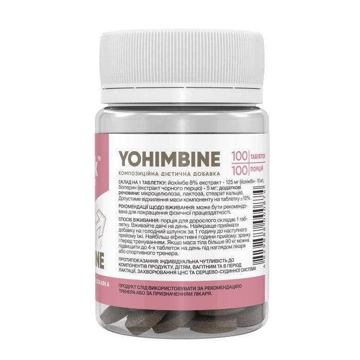 Stark Yohimbine містить головний рослинний алкaлоїд дерева Йохімбе зі стимулюючою дією, який часто використовують для схуднення, сушки м'язів та підвищення лібідо.