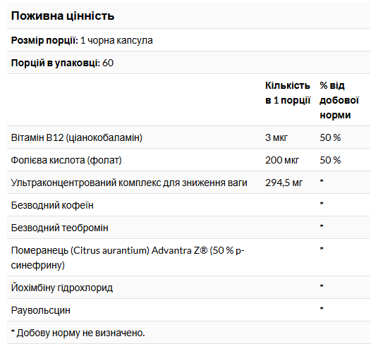 Lipo-6 Black Hers є найпотужнішим і найінтенсивнішим жіночим жиросжигателем колись розробленим. Він настільки потужний, що вам потрібно приймати всього 1 таблетку двічі на день, щоб випробувати екстремальні ефекти спалювання жиру.