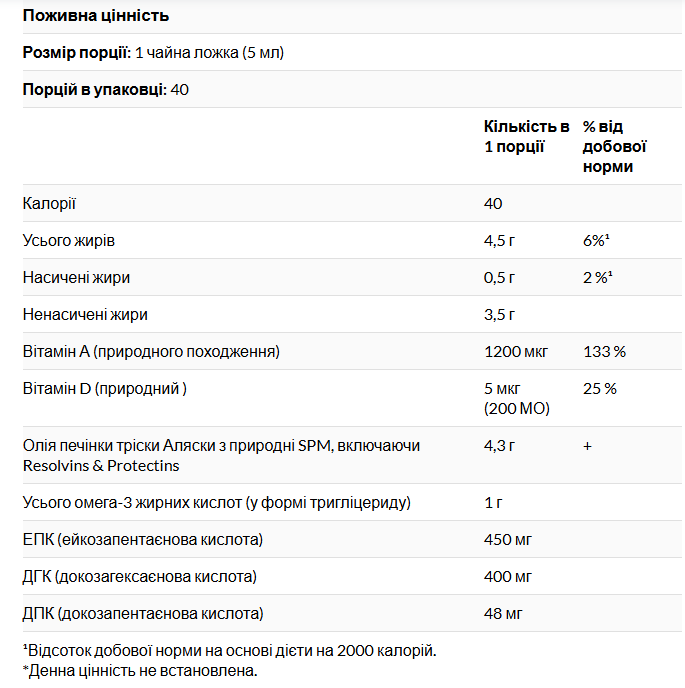 Олія печінки Аляски (gadus macrocephalus), виловлена на волосіні, лимонно-розмариновий смак без ГМО, змішані токофeроли без ГМО (з соняшнику)